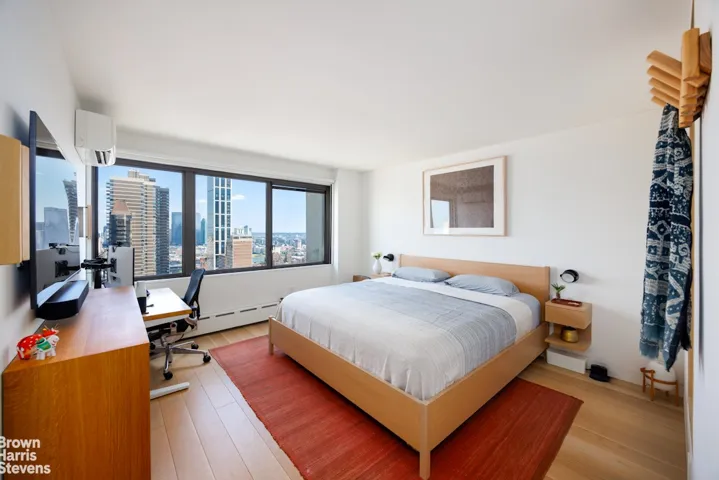 Additional thoughtful details include discreet TV wall behind sliding door, built-in entry storage, motorized shades, Lutron-controlled lighting, anti-UV window films, and split AC units in the bedrooms.