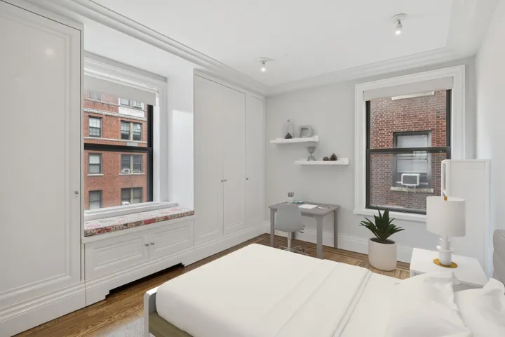 Beautifully renovated 2 bedroom,1 bathroom home located in a boutique co-op in Carnegie Hill. Enter the apartment through the gracious entry gallery into a spacious light filled living room. The adjacent eat-in-kitchen has a built-in banquette, beautiful cabinetry, high-end appliances, ample counter space and a large window. The sun-filled corner primary bedroom comfortably fits a king size bed and offers a large closet. Add to this a spacious 2nd queen sized bedroom and an elegantly appointed bathroom that features marble tiles. The apartment offers thru the wall-air conditioning and gorgeous pre-war details throughout including hardwood floors, 9-foot ceilings, raised doorframes and custom moldings and built-ins. Located at 150 East 93rd Street, the full-service co-op offers a laundry room, bike room, storage and a private courtyard. In the heart of Carnegie Hill, this home is next to all the best restaurants, shops and transportation the neighborhood has to offer. Pied-à -terres, guarantors, co-purchasing are permitted. 80% financing. 2% flip tax paid by purchaser.