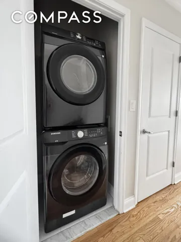 The condo has hardwood floors throughout, a charming built-in bookshelf, and high ceilings in the living room that contribute to the open, airy feel. A brand-new in-unit washer and dryer add convenience, while a dedicated basement storage area—perfect for seasonal décor, bicycles, or tools—provides valuable extra space.