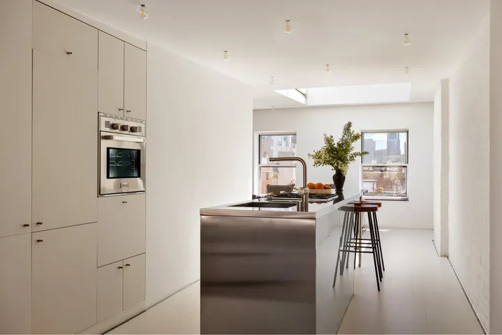 The top floor is yet another oasis – a sun-drenched lounge level complete with a full kitchen, additional living room crowned by a dramatic skylight, full bathroom, and a stylish den with terrace access. Whether hosting on the terrace or relaxing under the skylight, this floor is a showstopper. A second laundry room completes the convenience of this level.
