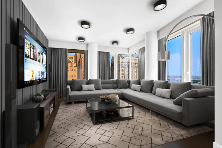 This exquisitely finished apartment features a spacious dining room with direct Statue of Liberty views, walls of windows that ensure tons of natural light, hardwood floors, a generous closet space, and two in-unit washers and dryers. Currently, the apartment is configured as a 4 Bedroom 4.5 Bathroom unit with ample living space and a media room, and it can be easily converted into a 6 Bedroom residence. When you enter the apartment, you will be greeted by magic vistas of New York City Harbor and Hudson River! The oversized living and dining rooms are made for family and friends gatherings and dinners. Beautifully designed kitchen is outfitted with top-of-the-line appliances. The apartment is lit with natural light throughout the day with South, East, and West exposures. The residence has four spacious bedrooms, including the master bedroom with custom-made closets. In addition, the master suite offers a large en-suite bathroom that includes a walk-in shower, a deep soaking tub, and a double-sink vanity. Designed by the world-renowned architects Pelli Clarke Pelli, The Visionaire at 70 Little West Street is the first high-rise residential building on the East Coast to receive LEED Platinum certification. State-of-the-art building amenities include a sky-lit indoor pool, sauna, steam room, jacuzzi, a social lounge with TV and fireplace, children’s playroom, fitness center, parking garage, and 24/7 concierge service. In addition, the landscaped terrace features gas grills, cabanas, and endless Hudson River views for comfort and relaxation. The Visionaire is the full-service luxury condominium where sustainable architecture meets art offering its residents a clean and healthy living environment with a high-efficiency air-filtration system, a centralized water filtration system, and low energy bills. Being right next to Battery Park City Esplanade, you will be only minutes away from the Financial District and Tribeca. New York’s Downtown finest restaurants, cafes, bars, markets, shops, parks, and museums are all steps away, as well as a multitude of transportation options – subways, buses, and ferries. With hundreds of activities and attractions, this prime location offers something for everyone: Brookfield Place, Eataly, Whole Foods, Equinox, The World Trade Center, & more!