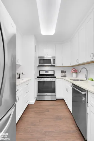 The entire apartment has been recently skim-coated and painted. It also has new floors and closets throughout.