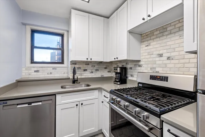 Windowed kitchen has been fully renovated. Featuring stainless steel appliances. Good cabinet and counter space.