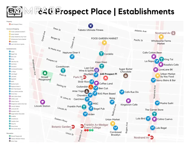 Located on Prospect Place, the home is surrounded by the neighborhood’s best dining, cafés, and cultural attractions. Local favorites such as Mayfield, RAS Plant based and Chavela’s are just moments away, and Prospect Park, the Brooklyn Museum, and the Botanic Garden are within easy reach. The 2, 3, 4, 5 and S trains at Franklin Avenue provide a quick commute to Manhattan and beyond.
