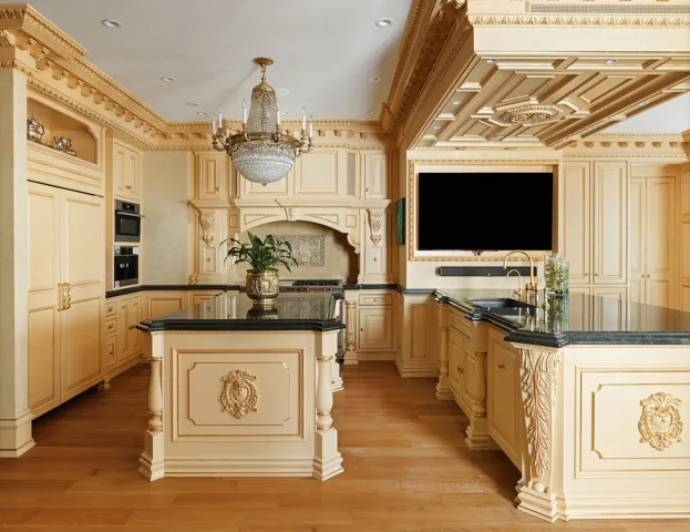 Beyond its visual drama lies a deeply thoughtful infrastructure. The residence features world-class soundproofing, a robust smart home system with integrated lighting, hidden speakers, and AV controls throughout. Every inch of flooring, millwork, and hardware was painstakingly selected to ensure both beauty and performance. The formal dining room is anchored by museum-quality stained glass windows facing south-glowing with light by day and warmth by night-while the chef’s kitchen is fully equipped for grand entertaining or daily living, tucked discreetly behind ornate cabinetry.