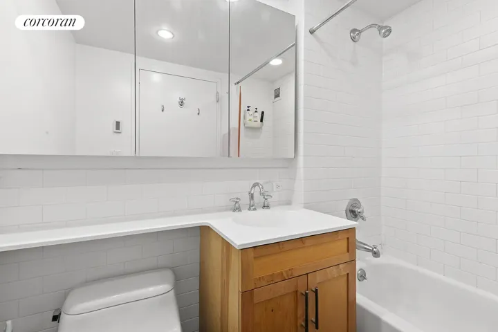 This hi-floor condo with skyline views has a large, open kitchen with FULL-SIZED SS appliances including over-the-range M/W, D/W, granite counters and great cabinet space. Enjoy recently updated flooring and HVAC, a double closet with the Elfa closet system that can easily be expanded. The bathroom has radiant-heated floors, a huge medicine cabinet with triple mirror vanity and recessed lighting.