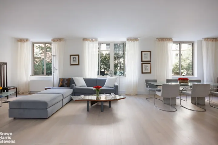 Next to library is the grand and elegant entertaining and living space A wonderful combination of 3 rooms, this unusually sumptuous area is loft like and airy with charming tree views.