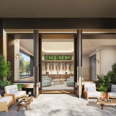 Resort-style, hospitality-driven amenities are designed by Ward + Gray. From the custom library, children’s playroom, and pet grooming stations to the private cinema and exclusive Williamsburg Wharf Resort and Recreation Club, there is something for every lifestyle. A landscaped porte-cochère leads into a welcoming 24-hour attended lobby. Co-working lounges feature private phone booths and a wet bar. Entertaining spaces include a lounge, dining room, pantry, kitchenette, and an 8th floor terrace with a summer kitchen fire pit. Car parking and storage are available for purchase.