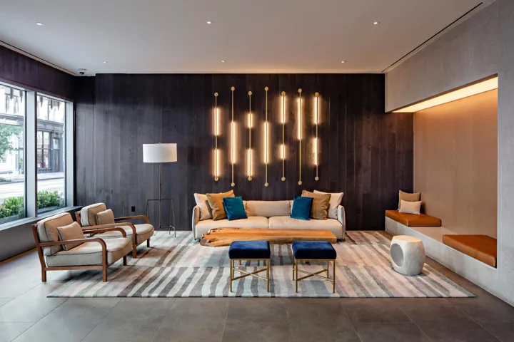 In the center of NYC’s landmark district and bustling Flatiron neighborhood, 7 West 21st offers a tranquil sanctuary complete with a sunken garden, landscaped courtyard and 2 roof-top terraces equipped with TVs, grills and additional entertaining spaces. Residents also enjoy a state-of-the-art fitness center and yoga studio, multiple lounges, a game room with a golf simulator and a children’s playroom room. The building includes a 24-hour concierge and is pet friendly.