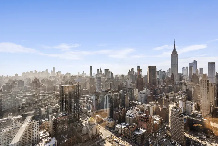 Breathtaking south-facing views abound from your wraparound bay windows of iconic NYC buildings. From the Empire State building down to the Freedom Tower, this luminously bright apartment captures iconic NYC.