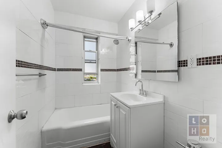 At the far end of the home, you’ll find a king-sized bedroom boasting double exposures (north and east), flooding the space with natural light. The renovated, windowed bathroom features a brand-new vanity, sink, and light fixture, as well as a recessed mirrored cabinet. Five spacious closets—including a walk-in at the entry—provide ample storage. Throughout the apartment, enjoy custom light fixtures and wide-plank hardwood flooring for a warm, stylish touch.