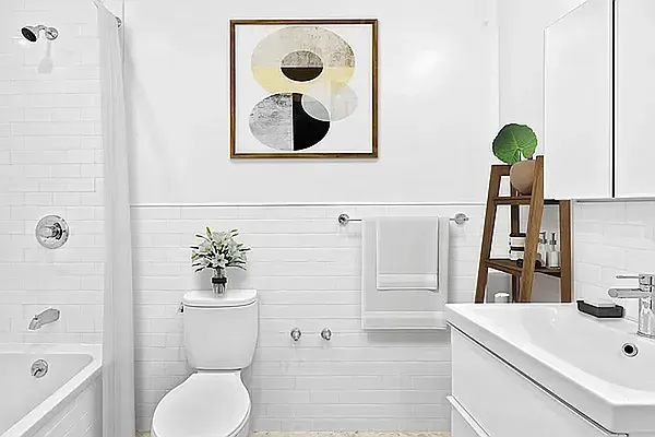 The primary bedroom suite offers the ultimate retreat, with breathtaking views of Prospect Park, creating a serene and peaceful ambiance. This spacious suite is complemented by a walk-in closet, providing ample storage, and a spa-like en-suite bathroom featuring a dual vanity and a stall shower—offering the perfect space to unwind after a busy day. On the opposite side of the apartment, two additional well-sized bedrooms offer flexibility for a home office, guest room, or personal space tailored to your lifestyle. The second full bathroom is equally stylish and well-appointed, with modern finishes and plenty of built-in storage, enhancing both form and function.