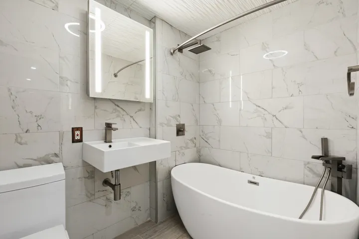 – Renovated bathroom with freestanding soaking oval tub (2020)