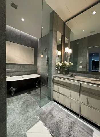 With 16-foot ceilings and soaring arched windows overlooking Union Square Park, this home offers scale, light, and drama that are simply unmatched. The expansive living and dining space flows into a custom chef’s kitchen with professional-grade appliances, marble island, and bespoke finishes—perfect for both entertaining and everyday living. Each bedroom features an en-suite bath with refined stone and wood finishes, while a powder room and full laundry room add convenience.
