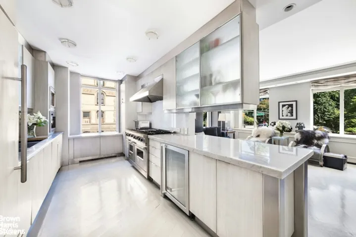 A kitchen on The Park! Dramatic and grand, this approximately 3000 square foot, corner home at the stunning Majestic has its kitchen overlooking Central Park.