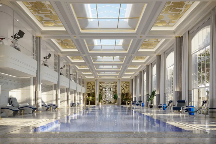 Designed by internationally acclaimed designer Jean-Louis Deniot, residences combine modern comfort with signature features such as a dedicated Concierge Closet and keyless entry with opulent details like ceiling coves, herringbone floors, oversized custom-paneled doors, spacious walk-in closets, and grand entry foyers with marble floors and brass inlays.