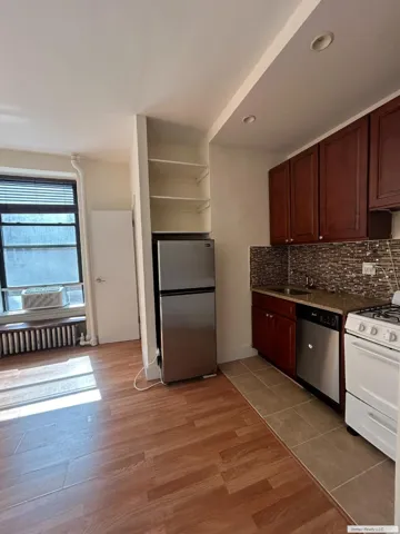 Apartment is fully gut renovated with wide plank hardwood flooring, new cabinets, stainless steel appliances, high ceilings and gorgeous renovated bathroom with walk in shower. Large bedroom accommodates queen/king easily.