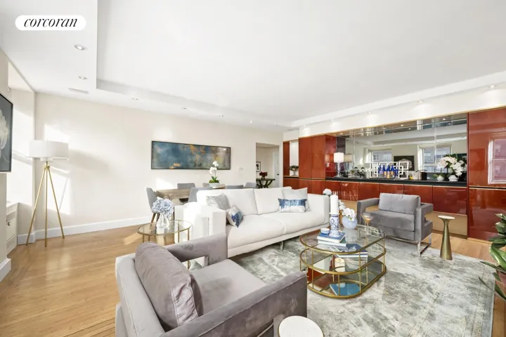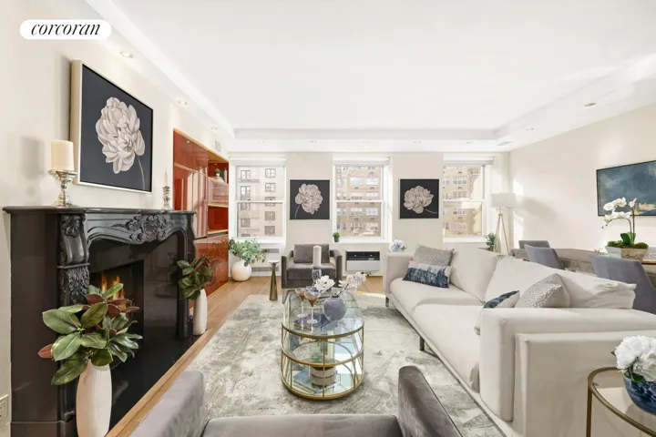 The spacious, bright, nearly 1,400 square foot apartment is a rare offering: a sophisticated Park Avenue home with style, commanding open views, and an unbeatable Murray Hill location. With three exposures – west, north, and east – the apartment is filled with natural light, with oversized windows framing cinematic vistas of Park Avenue’s landscaped median and dramatic skyline. Combining pre-war charm and features, including nearly 9-foot ceilings and a wood-burning fireplace, this apartment has classic proportions and scale, wonderful light and airiness.