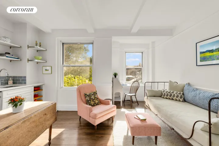 Welcome to 365 West 20th Street, Unit 7A, a sun-filled, view-filled, charming, prewar one-bedroom nestled in the heart of Chelsea. Accented by high beamed ceilings, original molding and beautifully restored wood floors, the home features stunning city views and all day sunlight from seven (!) windows facing north and east. The bright and spacious layout includes a classic entry foyer, a rectangular living room with an open kitchen, a versatile windowed alcove for work or dining, a generously-sized bedroom and an OMG walk-in closet. Please come as the pictures don’t do it justice!