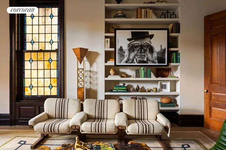 Commissioned by Charles Erhart, cofounder of Pfizer, and designed by architect Marshall J. Morrill as part of a paired row of mansions, the home originally sheltered Erhart’s daughter and went on to host uses as a Brooklyn Public Library annex and Catholic girls’ school before its modern reinvention.