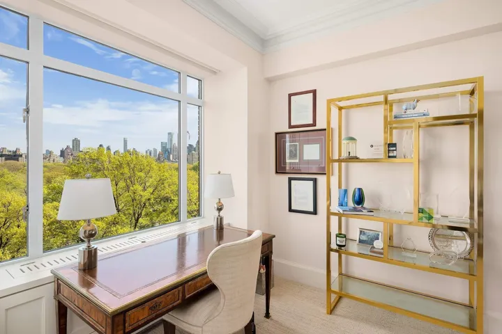 Featuring breathtaking, unobscured views of Central Park, the City skyline and open exposures east and north and a south-side angle, this spectacularly renovated space has walls of monumental picture windows—rare among CPW cooperatives—flooding the interiors with dazzling natural light all day long.