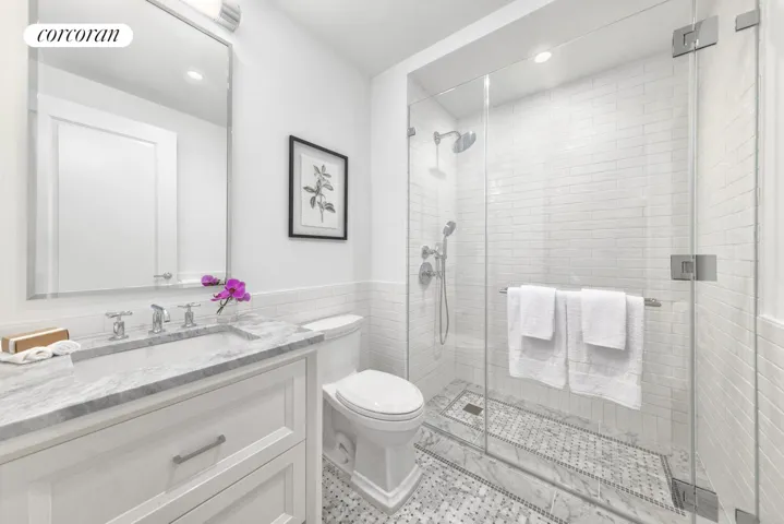 The chef’s L-shaped kitchen is ideal for both entertaining and everyday living, offering a breakfast bar, custom Italian cabinetry, Calacatta Laza quartz countertops, Bosch appliances, and a paneled wine refrigerator. The serene primary suite features Hudson River views, a walk-in closet, and a spa-like marble bathroom with a custom walnut vanity and a deep soaking tub. A spacious study/den provides the perfect home office or reading nook large enough for a comfortable pull out sofa for overnight guests. The full secondary bath with a glass-enclosed shower adds convenience for visitors. Additional highlights include high ceilings, wide-plank European white oak floors, a Bosch washer/dryer, along with abundant storage including a separate storage cage.