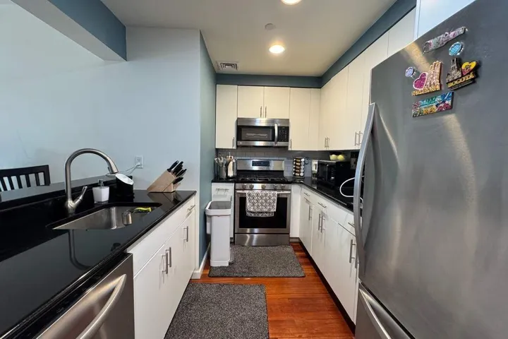 Sunny 2 bed, 2 bath. Main bedroom with en-suite bathroom. Apartment features a huge living room with a distinctive dining area, Brazillian cherrywood floors, separate galley kitchen overlooking the living room, dishwasher, washer/dryer in the apartment and HVAC in each room. High ceilings, excellent closet space. Building features 24 hour concierge, lobby lounge, gym, roof deck with river views.