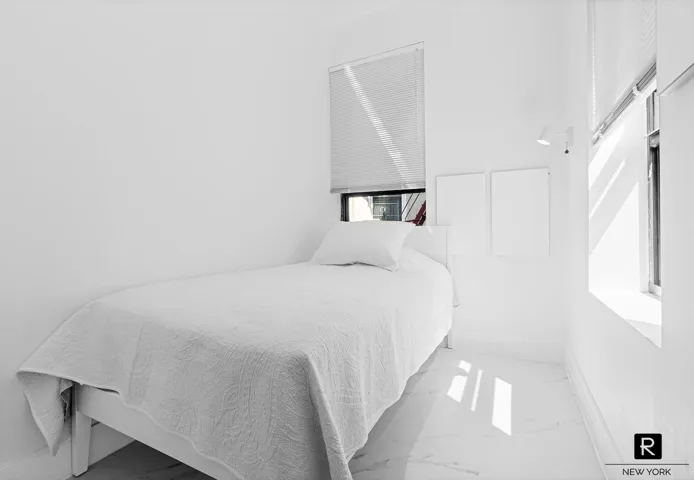 The must see 3-room Alcove Studio on the top floor is silent, features five windows, floods with natural light throughout the day, and is the only unit in the building which has been meticulously gut renovated down to the studs including white stone flooring in every room, and thoughtful overhead lighting. Every inch touched with a modern brush making this home beyond compare and a must see for qualified buyers.