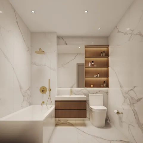 Introducing Penthouse Residence 6A at TEN27 — a meticulously crafted home that combines an expansive interior with a private outdoor space floating over neighboring buildings, delivering a sophisticated one-bedroom plus home office, one-bathroom Penthouse home in the heart of Bushwick. Spanning 662 square feet of interior space and complemented by a 74-square-foot private balcony, this residence offers a modern, versatile layout ideal for entertaining, working from home, and everyday living. Step into this southeast-facing home bathed in natural light, the home features soaring nearly 12-foot ceilings, oversized triple-paned windows with screens, and wide-plank oak flooring that accentuate the open and airy feel. A thoughtfully designed living and dining area flows seamlessly to the private balcony, creating an inviting setting for gatherings or quiet moments of relaxation. The kitchen is a chef’s showcase, outfitted with fully integrated Bosch appliances including induction cooktop and fully vented kitchen hood, gorgeous quartz countertops with island waterfall and matching quartz backsplash, and custom designed matte gray cabinetry, ideal for the everyday chef or ultimate entertainer. The primary bedroom offers a private retreat with abundant closet space. A spacious secondary room functions beautifully as a dedicated home office, guest room, or nursery—adding rare flexibility and long-term value to this oversized one bedroom plus home office apartment. The spa-inspired bathroom featuring a soaking tub, radiant heated floors, smart toilet, floating vanity with storage, and porcelain tiling. Additional highlights include an in-unit Bosch washer/dryer, multi-zone heating and cooling, a smart lock entry system, and plentiful storage throughout. TEN27 is a striking contemporary addition to Bushwick, bringing a sense of refined modern living to one of Brooklyn’s most dynamic neighborhoods. Situated on a quintessentially picturesque, tree-lined stretch of Bushwick Avenue, the building blends clean architectural design with a calming, modern-zen atmosphere all while introducing an elevated luxurious, amenitized condo lifestyle to the future residents of this bespoke new 20-unit boutique condominium. Inside, residents enjoy beautifully crafted residences paired with thoughtful amenities, including garage parking, a state-of-the-art fitness center with NordicTrack equipment, a gracious arrival lobby with virtual doorman system for security and convenience, an elevator, and a gorgeous landscaped rooftop featuring BBQ grills, outdoor dining and lounge areas, panoramic Manhattan city skyline views, and private cabanas available for purchase. Perfectly positioned at the crossroads of Bushwick and Bedford-Stuyvesant – and just moments from the M, J, and Z trains —TEN27 puts you within convenient reach of Brooklyn’s best restaurants, nightlife, galleries, shops, and parks, while offering a short 20-minute commute into Manhattan. From savoring a meal at a neighborhood favorite to browsing cutting-edge art at any of the numerous local galleries, shopping at one-of-a-kind vintage boutiques, or enjoying a quiet afternoon in any of the many local parks, TEN27 puts the very best of Brooklyn right at your doorstep.