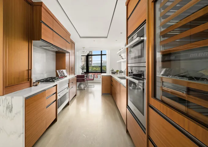 The custom Molteni eat-in kitchen, anchored by an inviting breakfast nook, is both a design statement and a chef’s dream. Alabama white marble counters gleam beneath soft ambient light, while professional-grade Miele, Wolf, and Sub-Zero appliances deliver exceptional performance for everything from intimate dinners to grand entertaining. An oversized wine refrigerator and bespoke LeFroy Brooks fixtures complete the space.