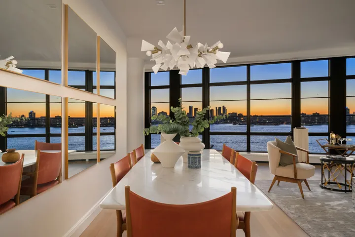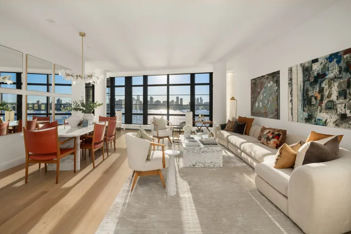 Bathed in sunlight and spanning 3,395 square feet, this 4-bedroom 4.5-bathroom West Village home at 150 Charles Street opens by direct elevator into a lifestyle of elegance, privacy, and effortless downtown living. Framed by floor-to-ceiling glass, the residence showcases the Hudson River and Manhattan skyline as a living work of art, an ever-shifting panorama of light, sky, and water that transforms by the hour. Inside, every detail speaks to luxury. Soaring ceilings, wide-plank white oak floors, and beautifully curated finishes create a sense of openness, calm, and refinement.