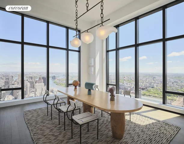 Penthouse 70 is a four-bedroom, four-and-a-half-bathroom residence featuring 4,765 square feet of interior space accented by southern, eastern, northern, and western exposure. Direct elevator entry leads into this expansive home, which offers unmatched views of The Empire State Building, Chrysler Building, Central Park, George Washington Bridge, and beyond. The dramatic entry gallery leads to a gracious great room that boasts southeastern exposure and floor-to-ceiling windows. A north-facing kitchen with adjacent dining room offers a Statuarietto marble island and Italian custom-crafted matte lacquer white cabinetry adorned with Sub-Zero and Wolf appliances. A formal dining room is adjacent to the kitchen and offers northeastern exposure.