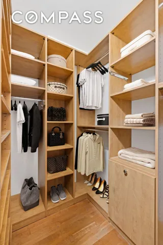 With city views amongst tree tops, spacious living and dining areas, additional space for an office set-up, an oversized bedroom, and an extraordinary custom built walk-in closet–this apartment offers the storage, flexibility and peace that is rarely found in Midtown East.