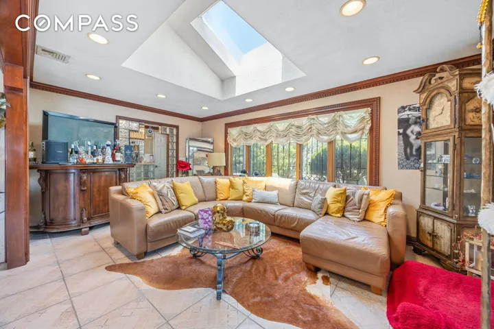 Welcome to this beautifully maintained ranch-style home set on an oversized 47’ x 105’ corner lot in the heart of Whitestone. This 3-bedroom, 3-bath gem offers bright, open living with a sun-filled open concept living room & dining room featuring a skylight, coffered ceiling with crown moldings, and central air conditioning for year-round comfort. The dining room’s sliding doors lead to a lush side yard, creating a seamless indoor-outdoor flow.