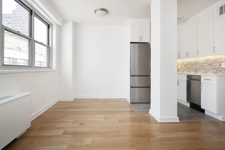 Newly renovated alcove studio sponsor apartment is now available for purchase. 14J has a brand new kitchen with stainless steel appliances, Caesar-stone counters and beautiful white cabinetry. The new bathroom has all new fixtures, a giant custom vanity with plenty of storage. The apartment has new floors throughout, and a large walk in closet. There is no board approval required.
