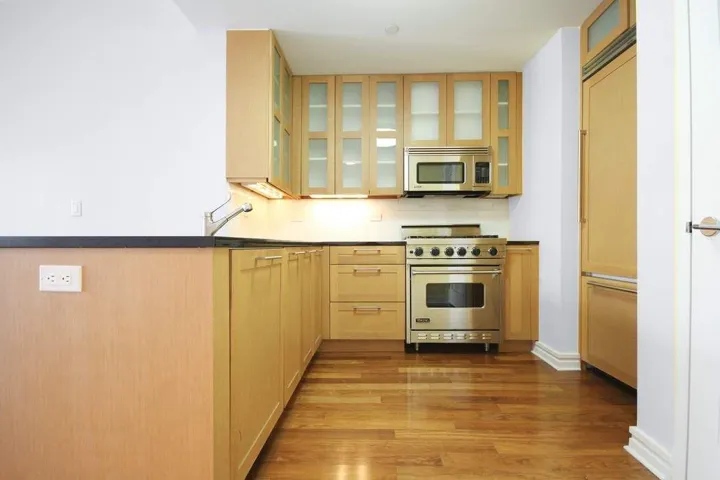 High-floοr Junіοr one bedrοom in thіѕ perfectly locаted full‐service luxury condominium. Floor-to-ceiling windows provide all-day light and gorgeous city views with Southern and Eastern exposures. Chef’s kitchen with high-end appliances. Marble bathroom. Washer/Dryer in the unit. Stunning Brazilian hardwood floors throughout. Central Air.