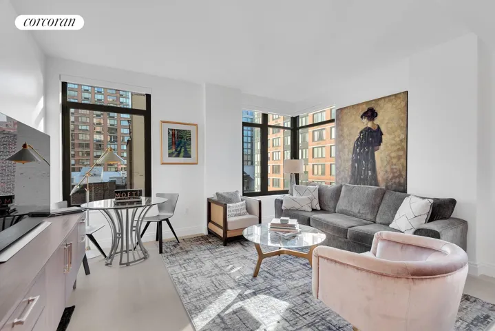 Welcome home to this gracious TRUE two-bedroom corner unit with 9.5 ceilings, generously proportioned living spaces, and two full bathrooms. Double exposures from your corner of oversized windows make this home cheerful on any day! The spacious and welcoming layout plus the stunning Chefs kitchen perfect for entertaining as well as a cozy night in, makes this the perfect oasis after a long day.