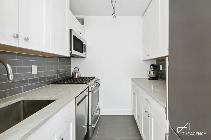 Move right in; everything has already been done. The striking quartz kitchen features barely used Liebherr and GE Proflie appliances, and the bath boasts new ceramic tile, a marble floor and Kohler fixtures. There is built-in storage under the brand-new, energy- and sound-efficient windows, and the apartment also features beautiful new 5″ plank floors and great closet space, (including an enormous walk-in). What a special place to call home, or your New York City pied-à-terre.