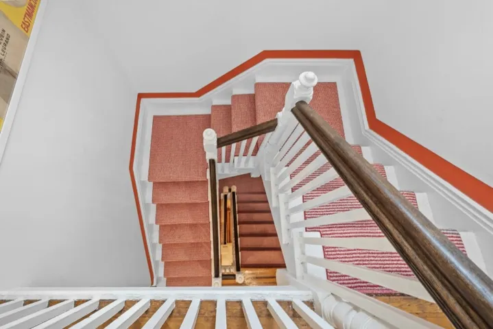 Third Floor. Studio-sized Bedroom with sitting area. Large Second Bedroom with window alcove for a king sized bed and deep closet. Magazine worthy remodeled bathroom with soaking tub, custom exposed rain shower. Large stair hall landing.