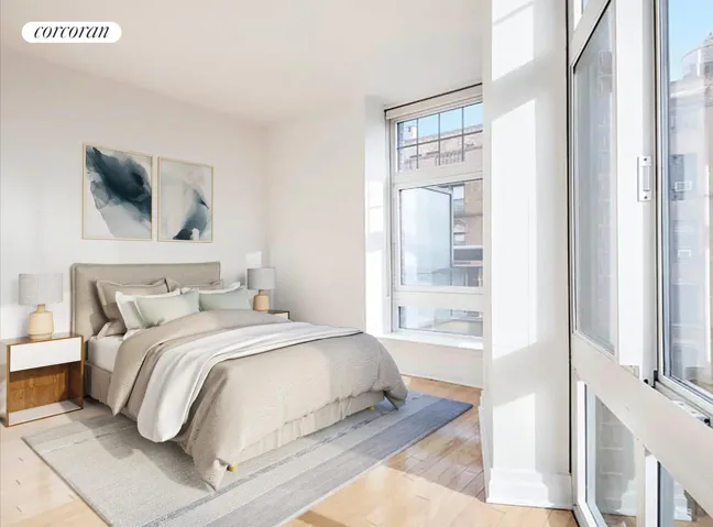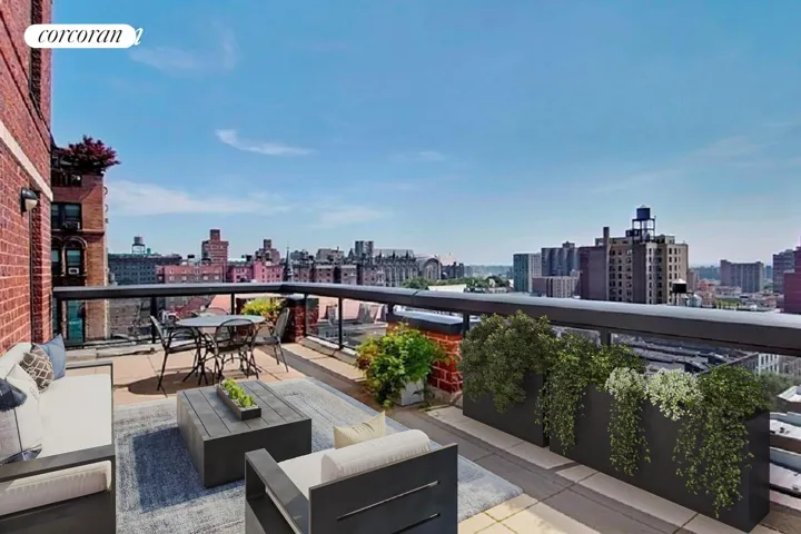 Perched high above Broadway at 107th Street, this two bedroom, two bathroom condominium with rarely available 417 sqft terrace boasts stunning open views of Central Park and the Cathedral of St. John The Divine! This home features split bedrooms for maximum privacy and a recently renovated primary bathroom with walk in shower. The open cook’s kitchen features stainless steel appliances and ample cabinets. High ceilings, floor to ceiling windows, a vented washer/dryer, private storage bin (no extra charge) and hardwood floors throughout complete the picture!