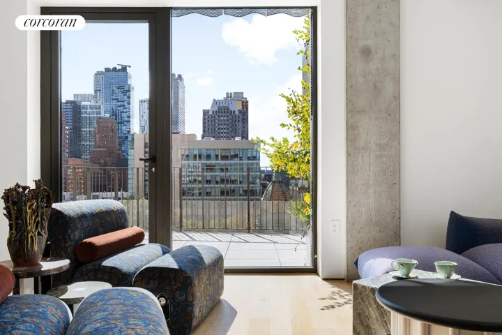 1,962 square feet of interior space unfold into an additional 1,444 square feet of private outdoor terraces and loggias that wrap the home in light and air. Each outdoor space frames cinematic views that shift with the day’s rhythm-soft morning light, golden sunsets, and the twinkling skyline after dark.
