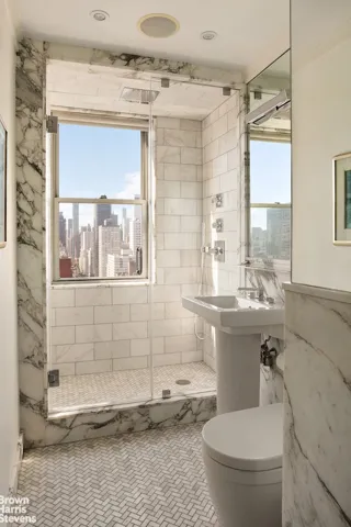 Residenсe ⵌ30ΑB is іmpeссably designed. Mοdern, уet classic, the spacious three bedroom, three and half bathroom home is enhanced with two private balconies and limitless panoramic city views in all directions. With 2,000sf of sun-filled living area, every room has been thoughtfully designed with luxurious finishes: the dramatic entrance foyer with its lacquered walls and tea-paper ceilings, powder room with French Limestone and Nero Marquina tiled walls and floor, dual primary bathrooms both clad in Arabescato marble and mirror, guest bathroom in Calacatta Gold marble slab, and bleached and glazed solid White Oak parquet floors throughout. The functional galley kitchen features top-of-the line appliances, Onyx countertops and backsplash, Macassar Ebony cabinetry, and two pantry storage closets. The Sonos sound system, Bosch washer and dryer, dry bar with wine cooler, numerous outfitted walk-in closets, and steam shower add to the exemplary luxury design. This unique offering is sophisticated, yet comfortable: neat, trim, tidy, and move-in ready.