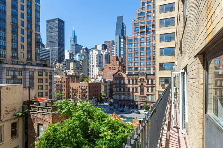 Flooded with light facing south/east, this turnkey pre-war one-bedroom offers nearly 1,000sf including a south facing terrace spanning the entire apartment with open city views. The 21.4 x 13.11 living room with a separate dining area flows from an expansive 8.5 x 6.4 foyer, while the thoughtfully designed renovated windowed kitchen features custom cabinetry and Pergo floors.
