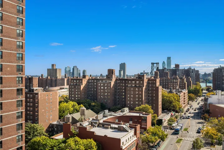 Perched on the 13th floor, this bright corner apartment captures sweeping Midtown views, including the Empire State Building. The spacious living room is surrounded by two walls of windows and opens onto a private balcony, creating an airy, light-filled setting that’s perfect for relaxing or entertaining. A windowed eat-in kitchen can easily be opened to the living area for a more open, loft-like layout. The generously sized bedroom offers two closets, while the windowed bathroom adds a touch of charm and functionality. Newly refinished hardwood floors and fresh paint make this home move-in ready.