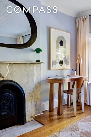 The parlor floor features soaring 13-foot ceilings with original crown moulding details, two original marble-mantled fireplaces, and a gracious double parlor perfect for entertaining or quiet evenings by the fire. A two-story rear extension on the garden and parlor levels enhances the home’s proportions and brings in abundant southern light. The extended parlor floor includes a cozy dining room with a built-in wet bar, sink, and two wine fridges—making it the ultimate spot for relaxed evenings or entertaining guests.