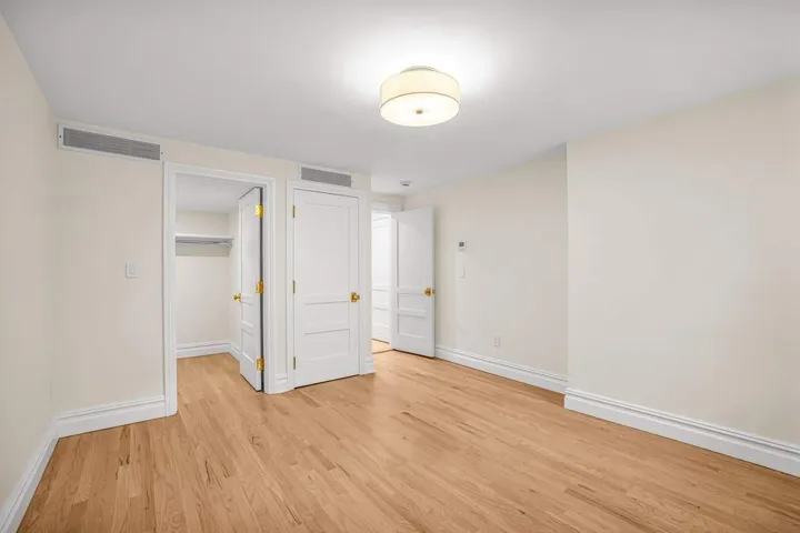 The spacious primary bedroom features a large walk-in closet, along with an additional closet conveniently located just beside it for extra storage.
