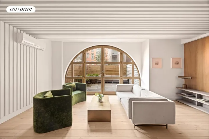 Come home to this super stylish, sunny and “like-new” 2 bed, 1 bath condo WITH INDOOR PARKING in the most desirable spot in Park Slope! Easy access to the F/G/R trains and a quick jaunt to Prospect Park, this mint-condition gem is a rare find, situated in one of the only full-service elevator buildings in the neighborhood. Enjoy living in LUNA, an architecturally significant building, distinguished by captivating and oversized arched windows and a beautiful cream brick facade, designed on both the inside, and out, by award-winning Italian architect Luca Andrisani. Additional features throughout include lush wide-plank hardwood floors, central heating and cooling, practical built-ins and bookshelves, and your own washer and dryer.