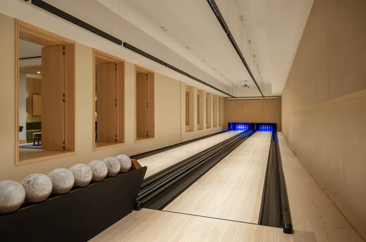 The Garden level features our ground floor amenities. Through a private entry court, a contemporary porte cochère welcomes you to a sheltered vestibule, and to the building’s triple-height lobby. The fully serviced lobby features a sculpture by Jacob Hashimoto and floor-to-ceiling window walls. Adjoining the lobby is the private garden lounge overlooking the MPFP-landscaped Gair Gardens. Located in the building’s lower level, The Club is all about fun and fitness, complete with a game lounge, bar, two-lane bowling alley, state-of-the-art fitness center, spin studio, boxing gym, private locker rooms and maritime-themed kid’s playroom. The Bridge level of Olympia, on the 10th floor, offers a variety of indoor & outdoor amenities dedicated to recreation and relaxation. Features include a 60″ indoor lap pool, wellness amenities, juice bar, a 58″ outdoor pool and hot tub, cabanas, barbecue areas, children’s ship-inspired playground & waterpark, and a full-size tennis court overlooking the Brooklyn Bridge, lower Manhattan and beyond. Additional services include private on-site parking available for rent or purchase, 24-hour doorman and concierge, package room with refrigerated storage, bicycle storage and private residential storage available for purchase.