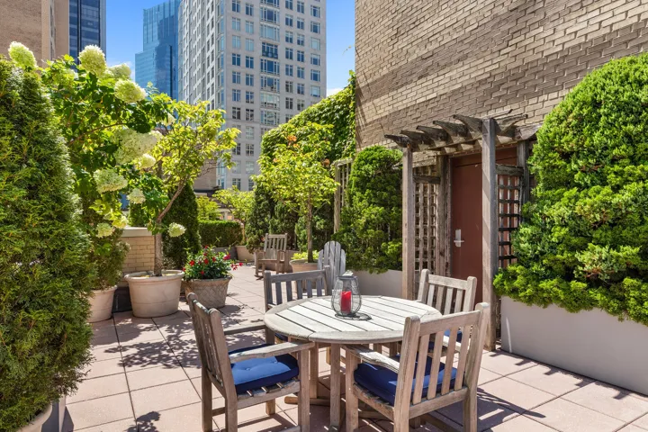 The main level features a large living room with 5 oversized windows facing the Park. Indoor/outdoor living is effortless as French doors open onto the terrace from both the formal dining room and the kitchen, allowing for easy entertaining and a free flow of guests. Whether you’re hosting family, friends or simply seeking a tranquil retreat, the options for everyday use and entertainment are varied. The terrace is also ideal for year-round use, with trellised gardens, an outdoor grill, separate dining and living areas and plenty of additional room to expand the dream.