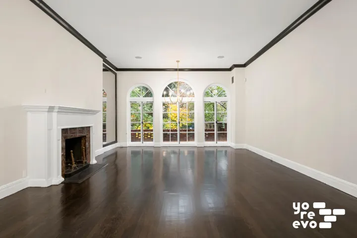 The home offers five bedrooms, five and a half baths and seven decorative fireplaces, complemented by soaring ceilings, grand arched windows and elegant proportions throughout.